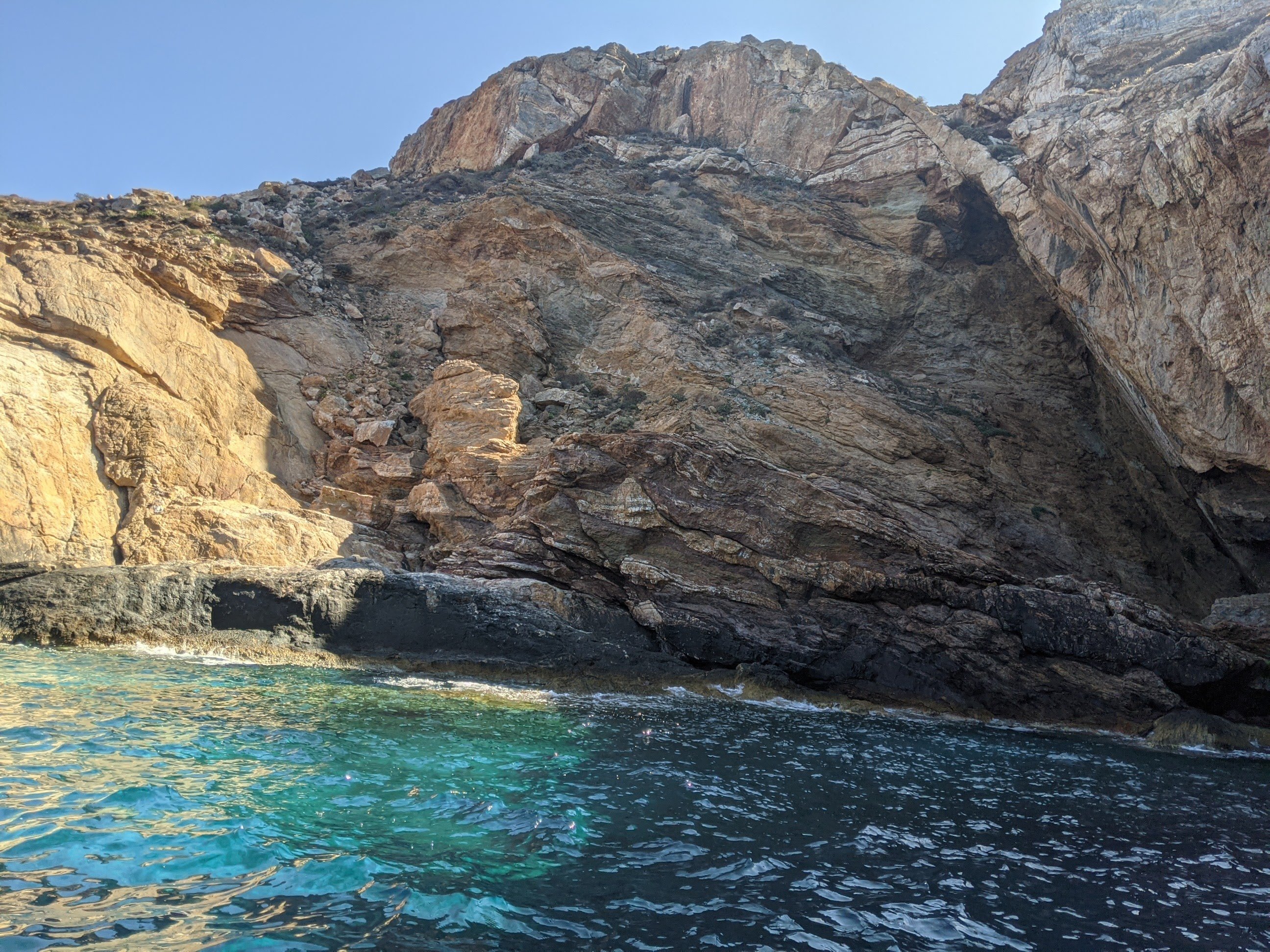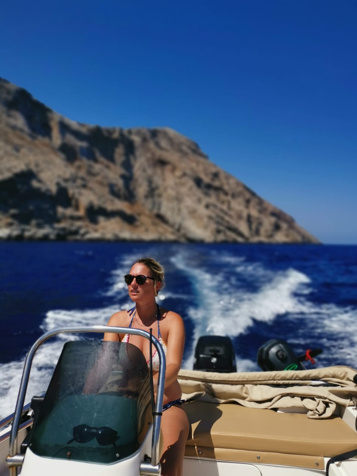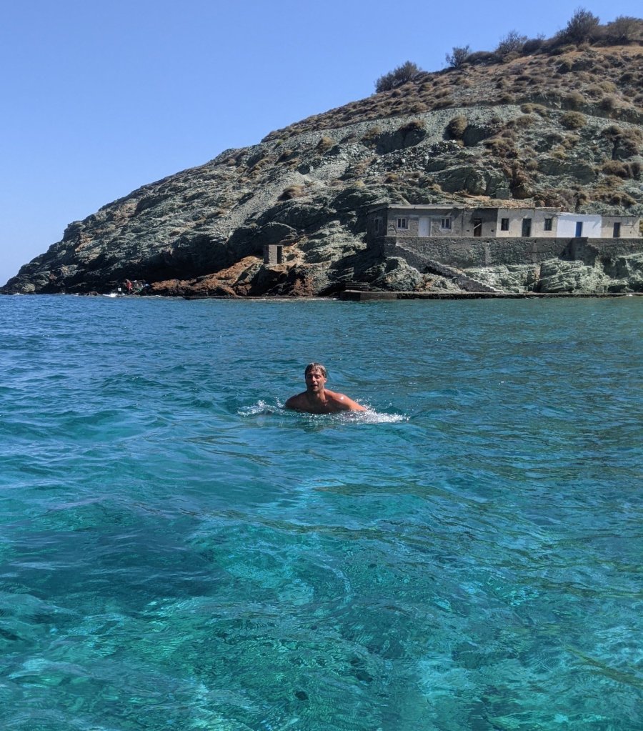 A Agkali, nous avions loué un petit bateau a moteur sans permis. Et nous nous sommes vraiment régalé. Nous avons réussi à faire tout le tour de l’île : les vents n’étaient pas trop fort du côté nord malgré ce que nous avait dit le loueur. Nous avons jeté l’ancre à des endroits inaccessibles a pieds, c’était incroyable.