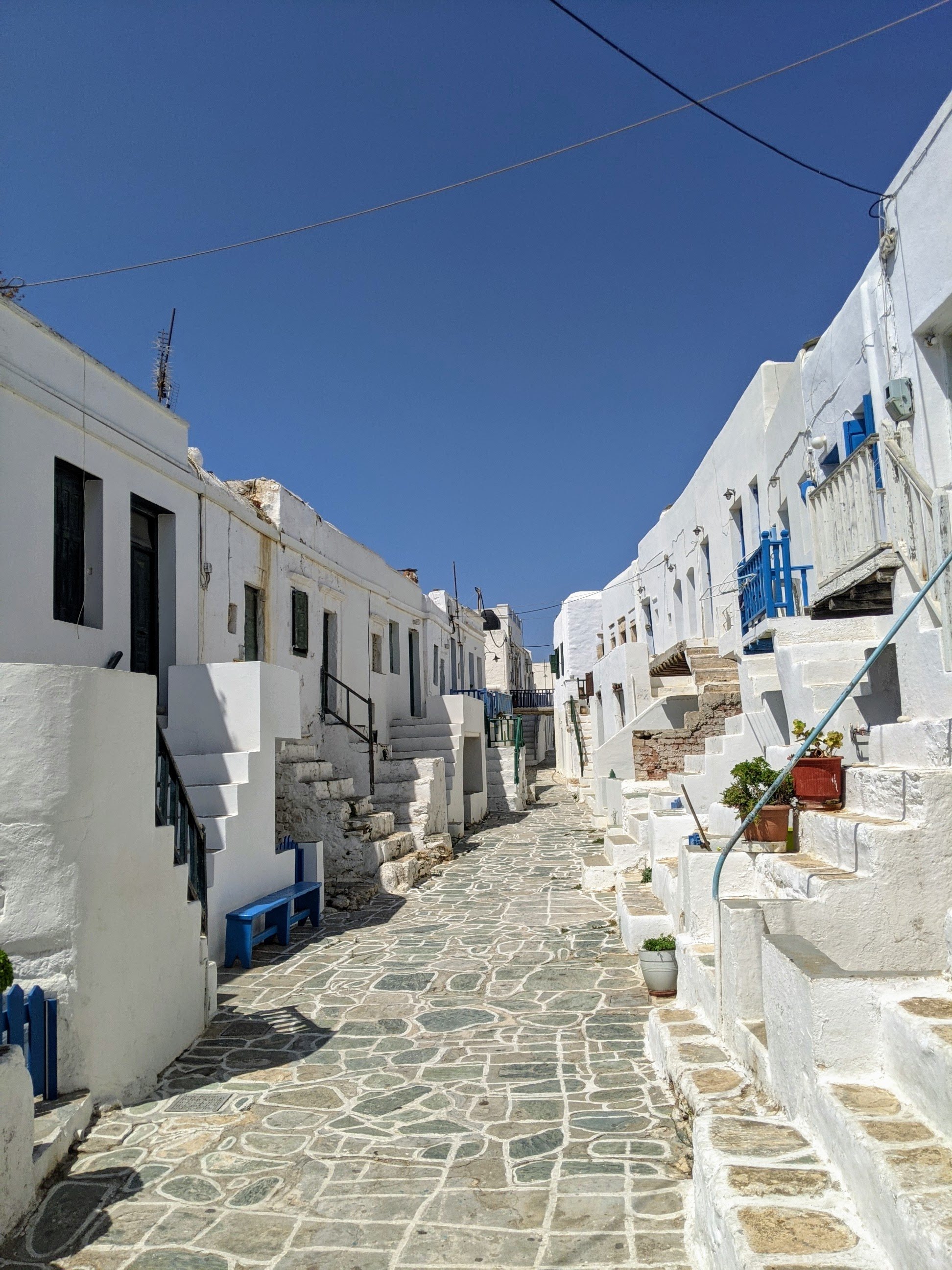 Nous avons trouvé une petite chambre à Chora, chez une italienne prénommée Barbara, pas très grande mais fonctionnelle et idéalement placée. On tombe vite sous le charme de cette Chora, composée de petites ruelles typiques et de places où sont installés restaurants et petites tavernes. Le soir, la ville s’anime : les boutiques s’ouvrent, les bars sont nombreux, on profite des terrasses et on boit du rakomelo ♥️