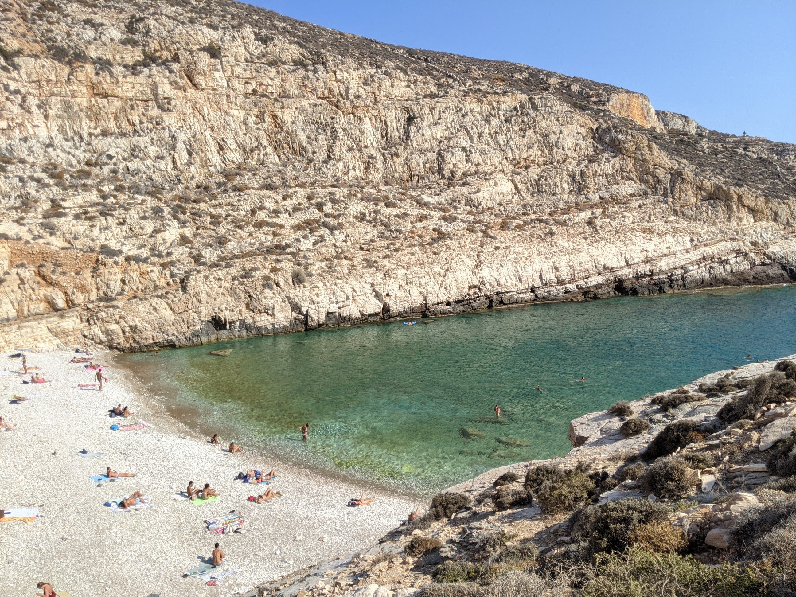 - La plage de Livadaki. Il faut compter environ 45 minutes pour l’atteindre. Il a un coin avec des arbres pour trouver un peu d’ombre. Ne soyez pas étonnés par les possibles naturistes.