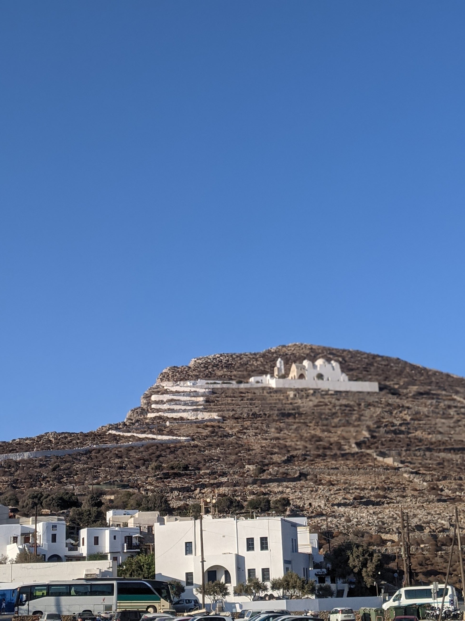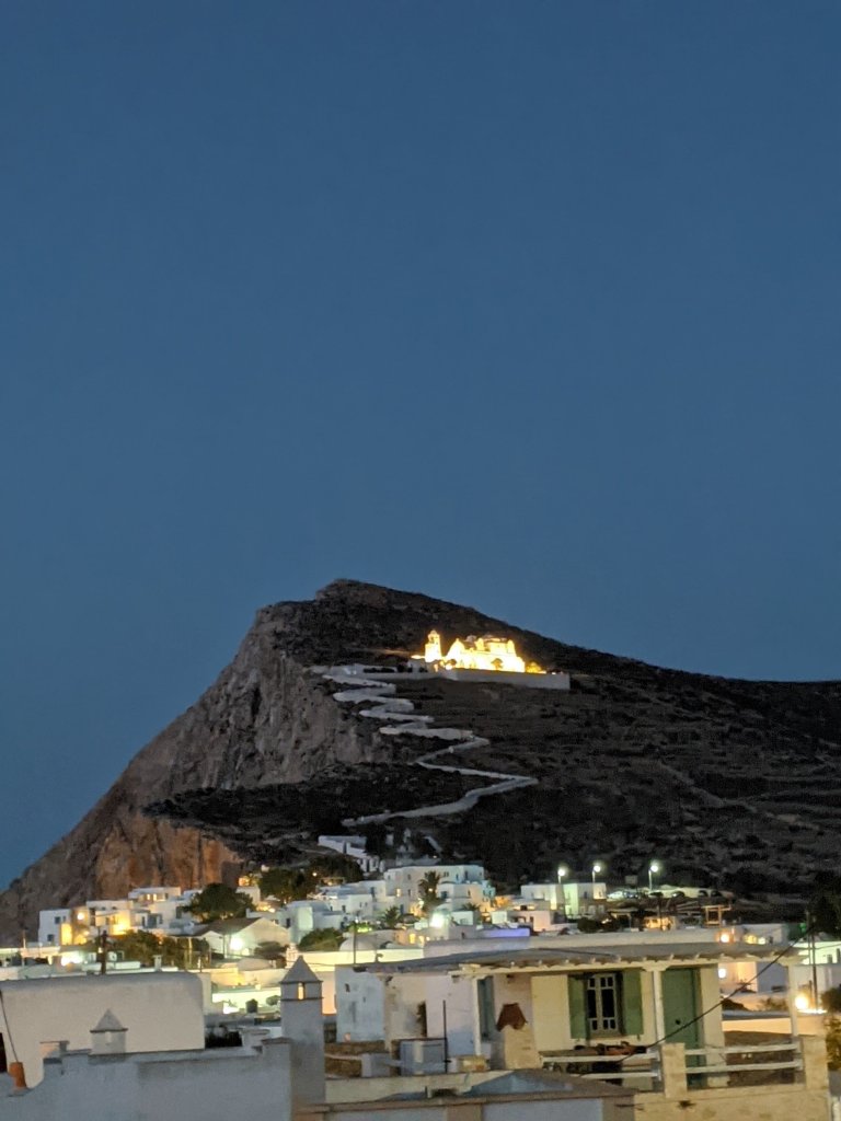 Mais sans conteste, la star de Folegandros est l’église Panagia sur les hauteurs de Chora. Le chemin est sinueux pour y accéder (a pied) mais grimpe tout de même pas mal. L’église est charmante, et en fin de journée c’est un flot de promeneurs qui partent à l’assaut de cette côte pour dénicher la meilleur place pour admirer le coucher de soleil ☀️