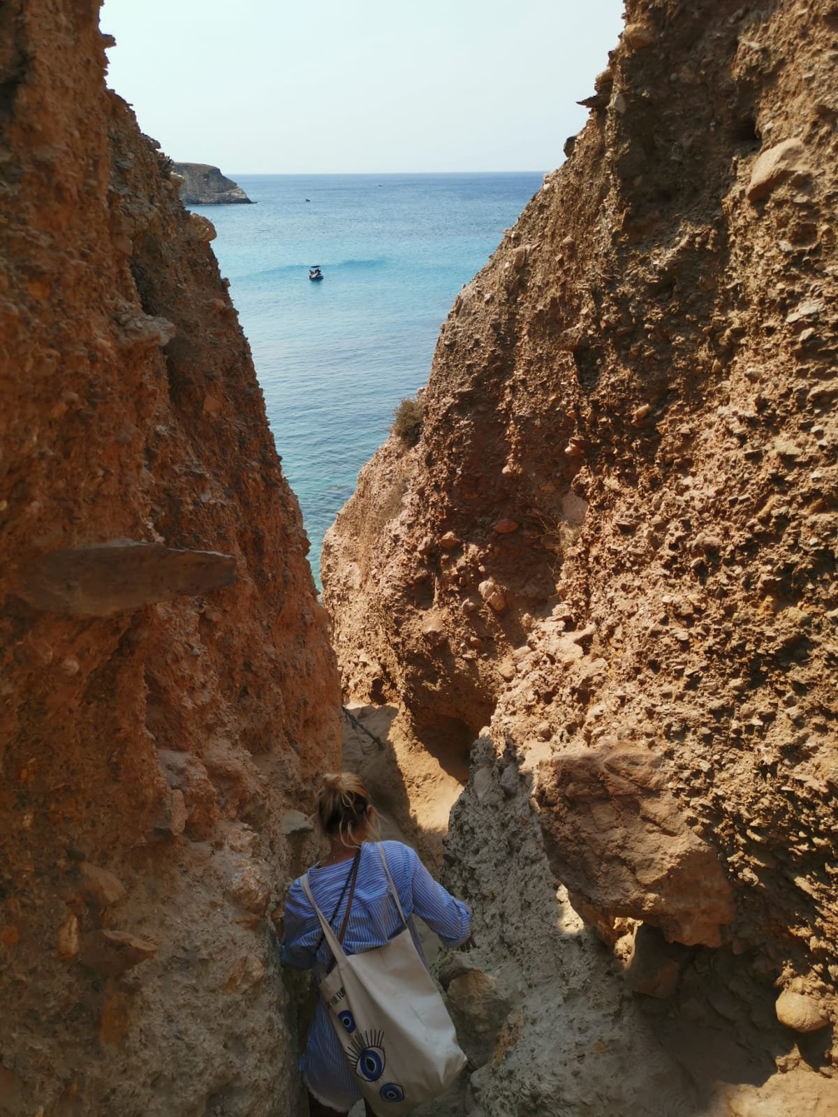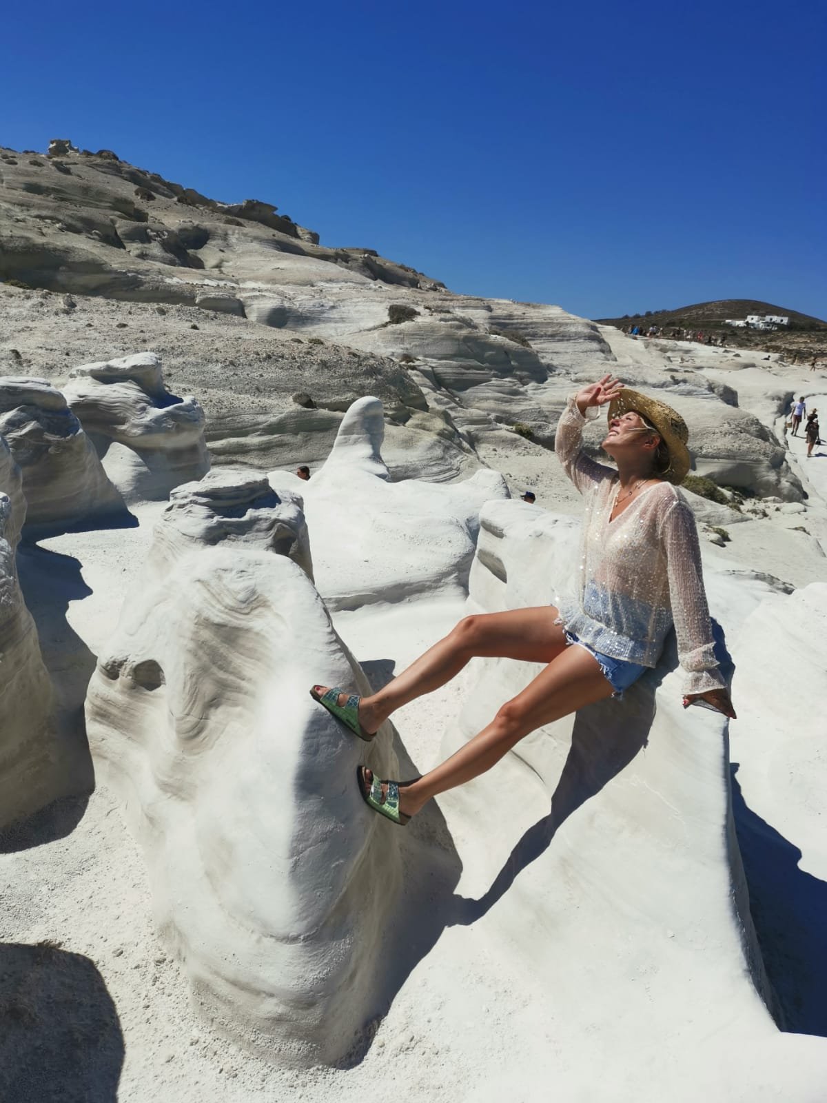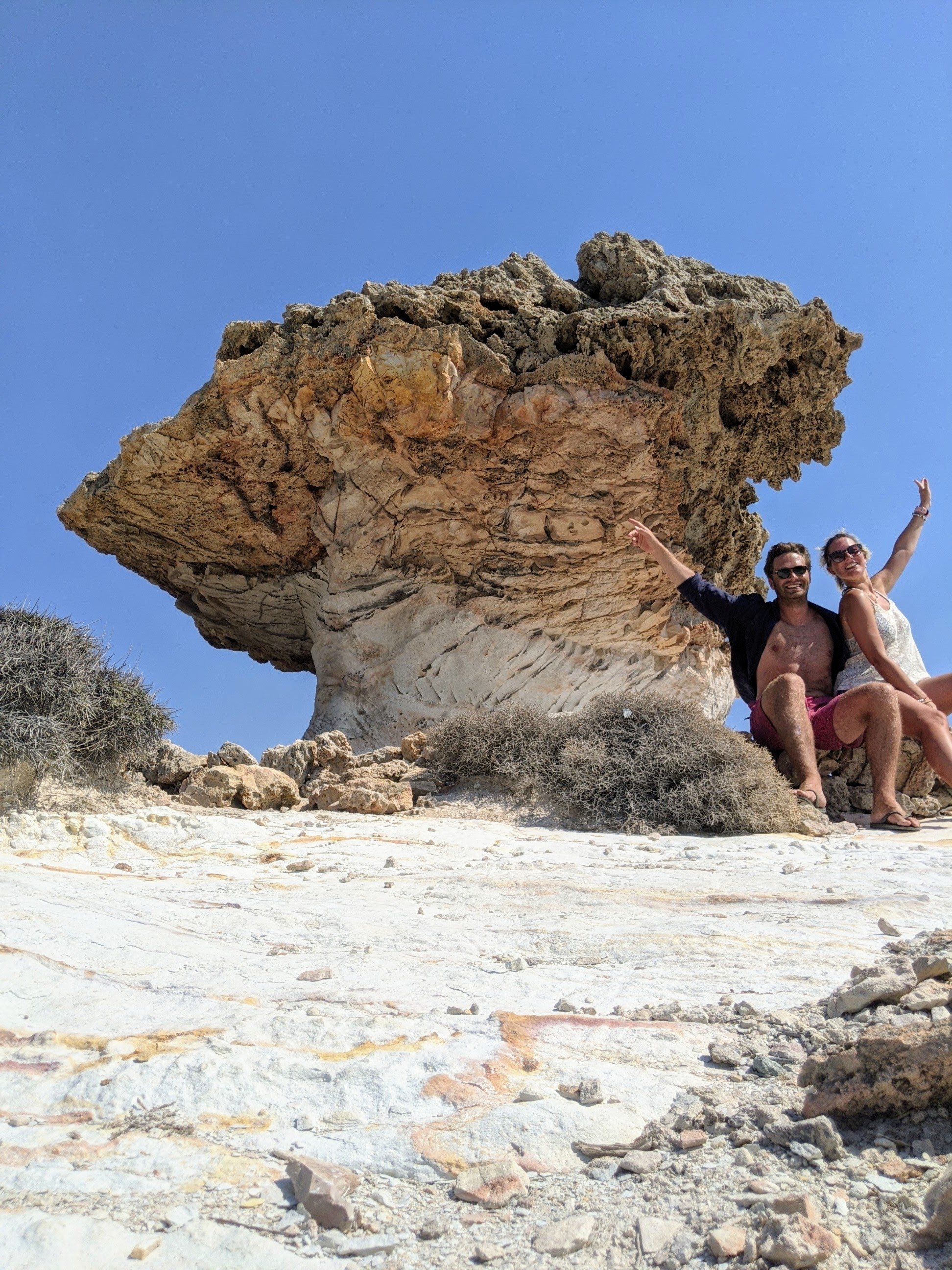 Nous nous sommes également lancés dans une folle épopée sur l’île de Kimolos : un randonnée pour atteindre le SKIADI, une roche géologique en forme de champignon sculptée par les vents des cyclades. Il faisait chaud. Très chaud. Trop chaud. J’ai vraiment cru que ca n’en finirait jamais. Nous l’avons atteint en 45 minutes environ, le chemin n’est pas difficile du tout, mais avec la chaleur cela devient vite pesant. Pensez à prendre de l’eau !