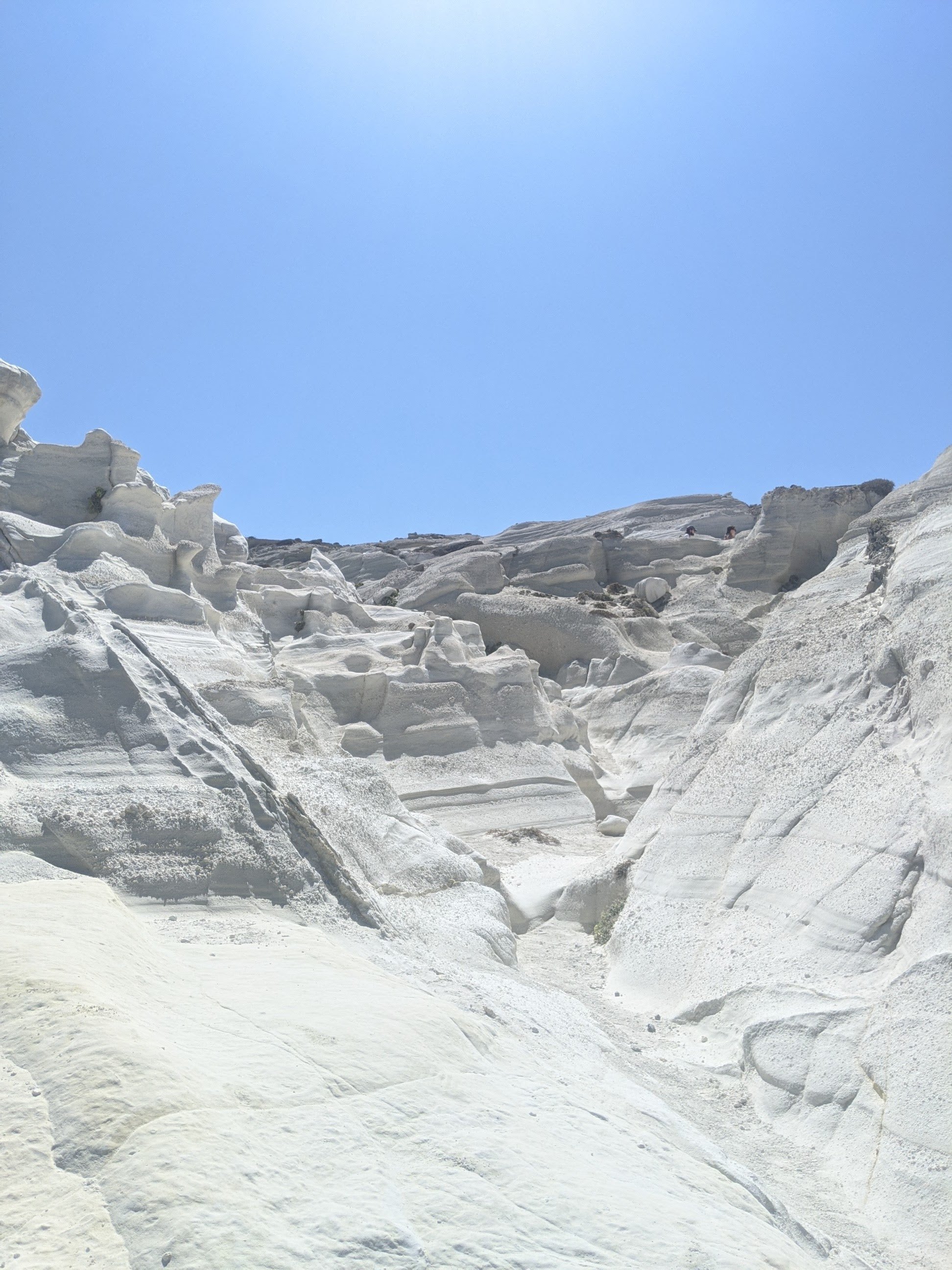 Nous explorons dans un premier temps le nord de l’île. Nous arrêtons évidemment sur la plage lunaire de SARAKINIKIO. Il y a du monde, beaucoup de monde. Nous en profitons tout de même mais reviendrons plus tôt un autre jour. C’est beau, c’est incroyable. Les falaises blanches jouent avec les nuances de bleu de la mer.