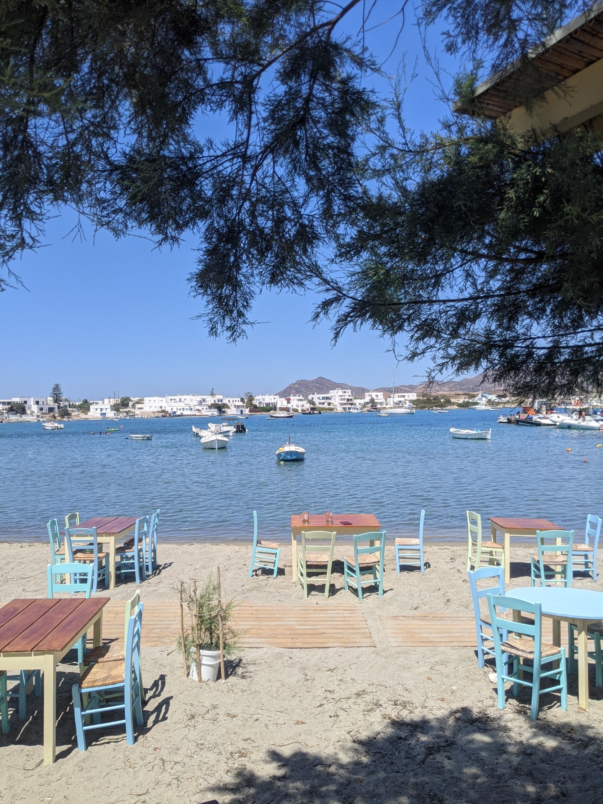 On pousse jusqu’à Pollonia où on s’arrête déjeuner chez RIFAKI. Le temps lui aussi semble s’être arrêté. On mange bien, le coin est calme, les chats se prélassent.