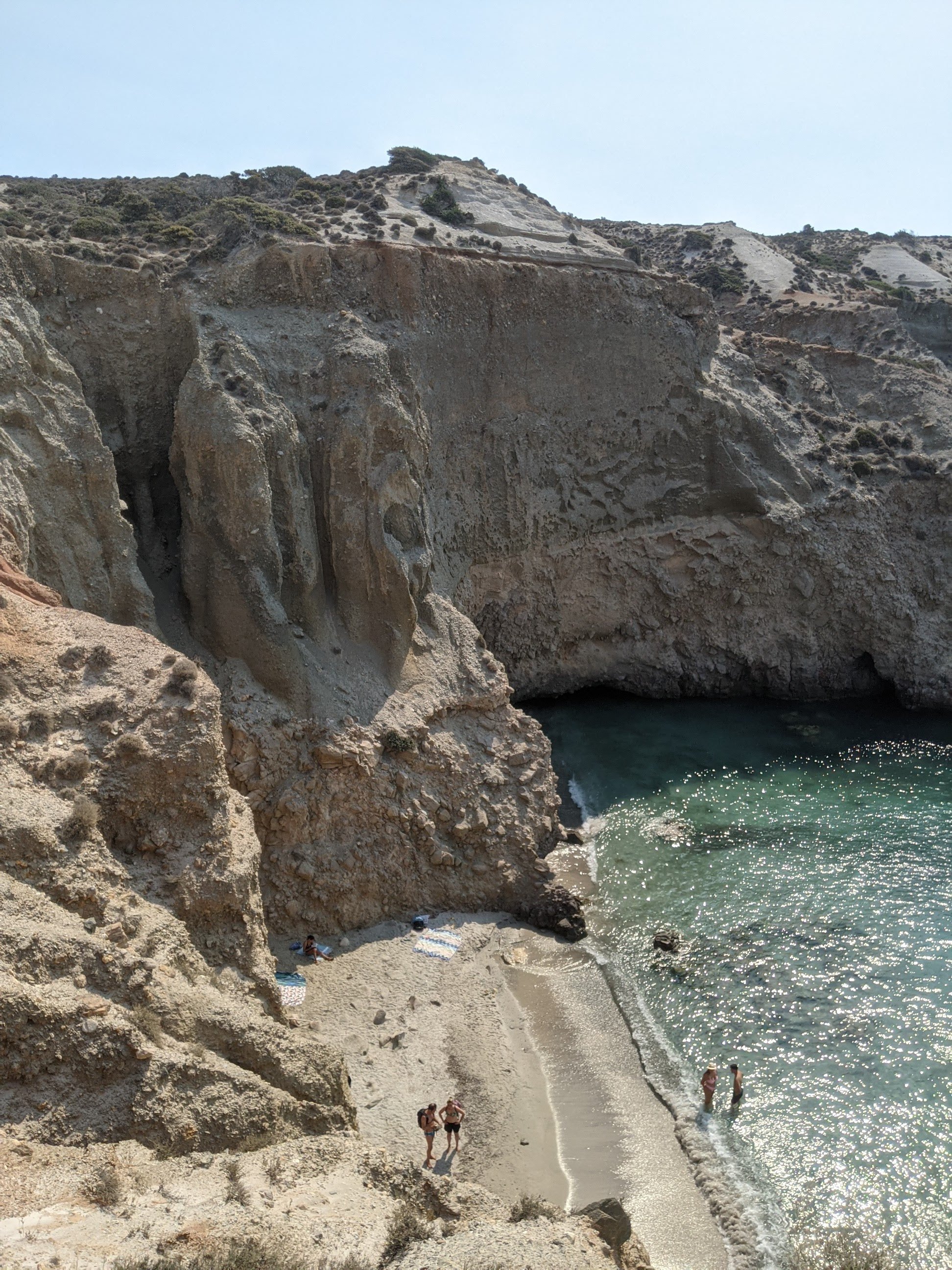 La partie Ouest de Milos est très difficilement praticable, même en 4X4. Par ailleurs, c’est aussi l’habitat privilégié de la vipère de Milos, l’un des serpents les plus menacés d’Europe. C’est une zone Natura 2000 où se trouvent de très beaux spots, et plages mondialement connus. Il est donc impensable de ne pas faire un tour en bateau pour apercevoir ces lieux d’exception et se baigner dans ces eaux cristallines (et ce sans risquer de croiser la charmante bestiole mortelle).