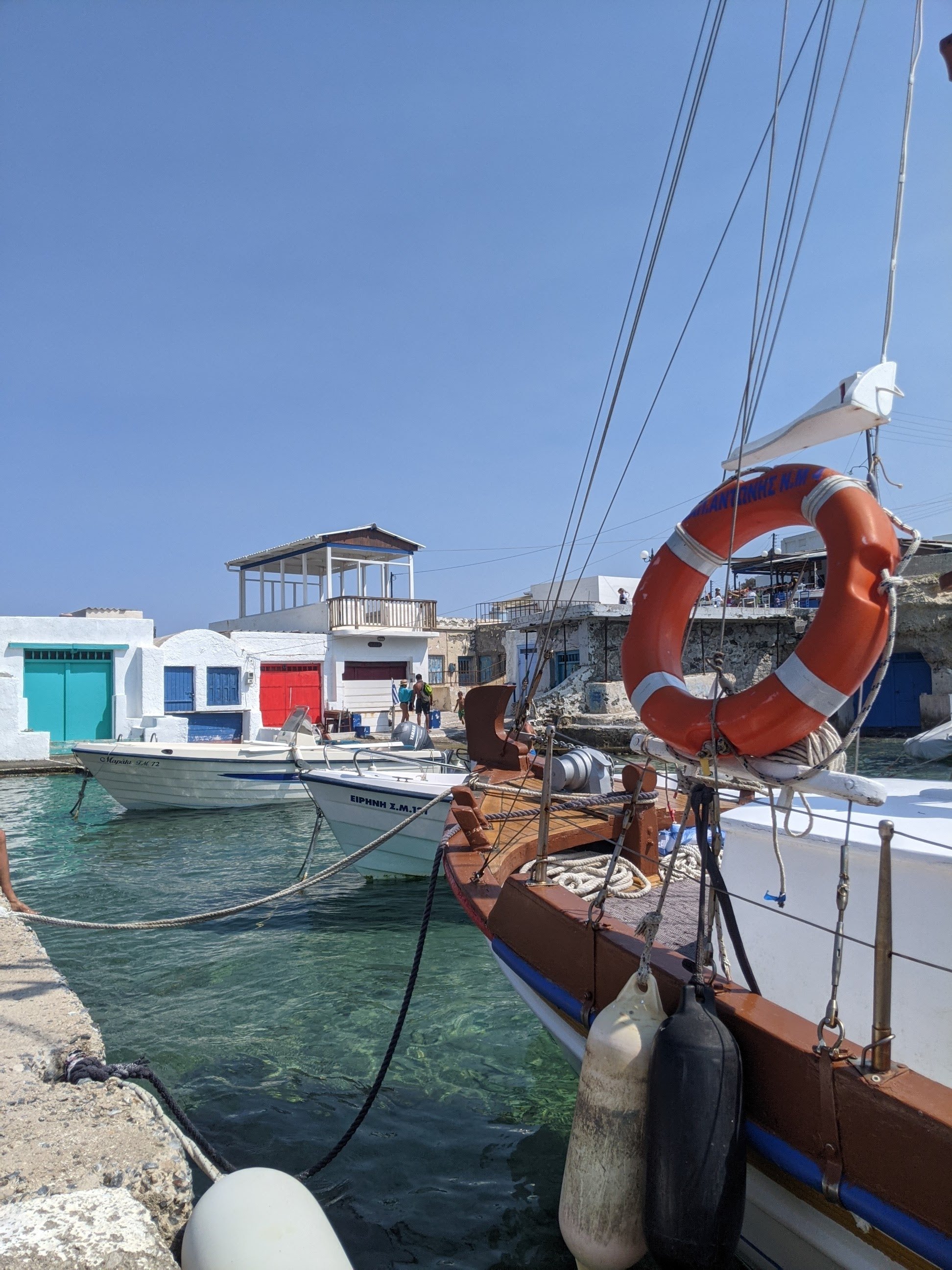 Au nord également, ros coups de coeur pour le port de FIROPOTAMOS. Les quelques petites maisons sur la plage et les portes colorés des « hangars » à bateau donnent à ce lieu un charme fou. La baignade était top. Il y a un petit spot connu telle une porte s’ouvrant sur la mer pour prendre une belle photo, un peu sur les hauteurs.