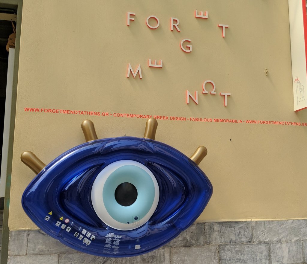 - Dans le prolongement de cette rue il y a la boutique FORGET ME NOT, que j’aime énormément. Plus chic, avec de beaux objets à rapporter (dont une bouée gonflable en forme d’oeil grec qui finira un jour dans ma collection)
