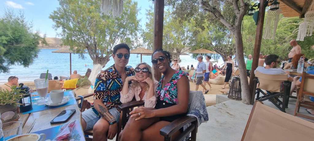 Nous avons réservé chez Vassilia on the Beach tenu par Phryxos. Un personnage attachant, adorable et très serviable. Nous y sommes allés de nombreuses fois, et il a toujours été incroyable. Nous avons lié des liens, comme avec Xanthi. Le Petit dej/brunch/Dej s’est super bien passé. L’équipe du Vassilia est incroyable, sympathique, généreuse et efficace. J’aime beaucoup ce lieu que je trouve à la fois relaxant et très friendly. L’atmosphère y est détendu et sincère. Et les cocktails sont très bons !